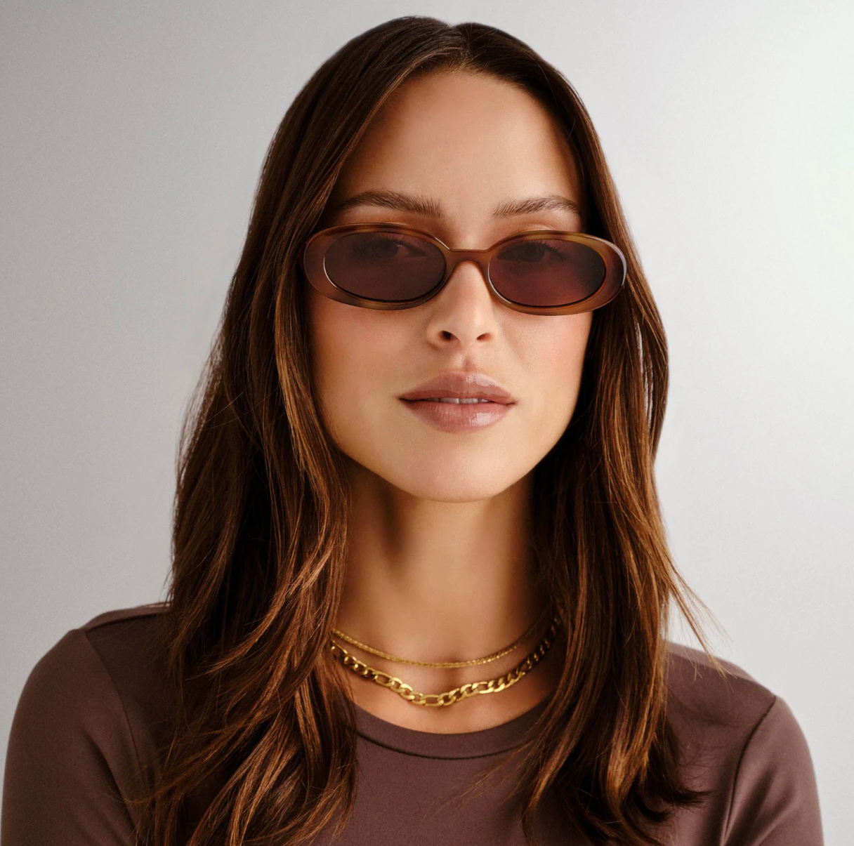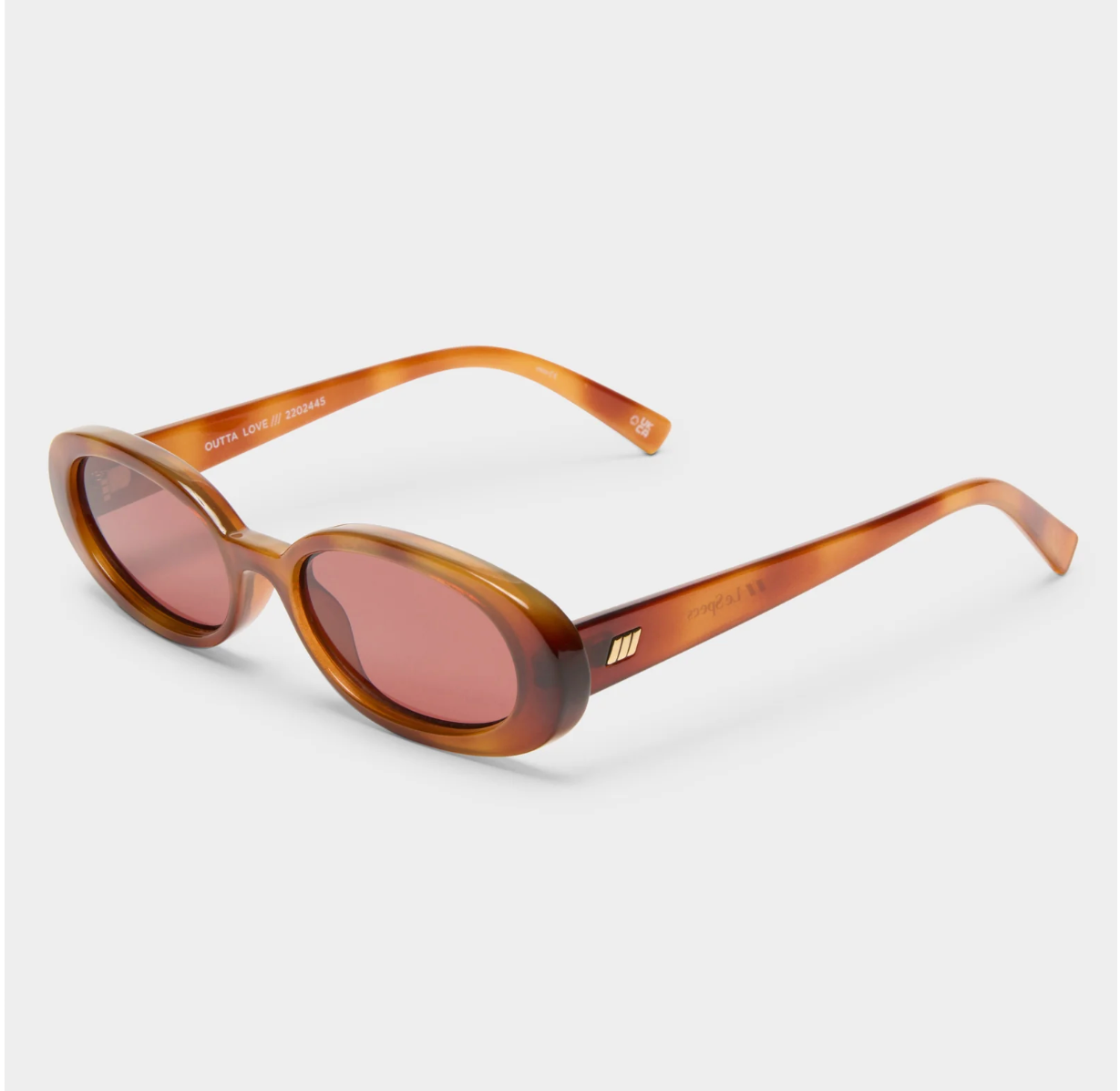 Exuding '90s confidence, our iconic OUTTA LOVE silhouette offers a minimal nineties look. This petite, slimline oval silhouette features a modern flat profile and signature Le Specs gold metal hardware, and is just the right size to complement your face without hiding your best features.