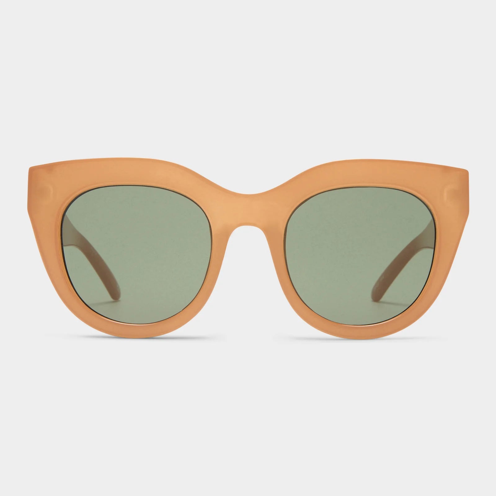 A favorite of Meghan Markle and Olivia Palermo, the AIR HEART silhouette is an iconic Le Specs style. With oversized and dramatic proportions reminiscent of a cat eye, the style is designed with a thick semi-translucent tan frame and luxurious metal top bar inlay, then fitted with premium zero base smoke flat lenses. The perfect statement sunglass to suit all face shapes.