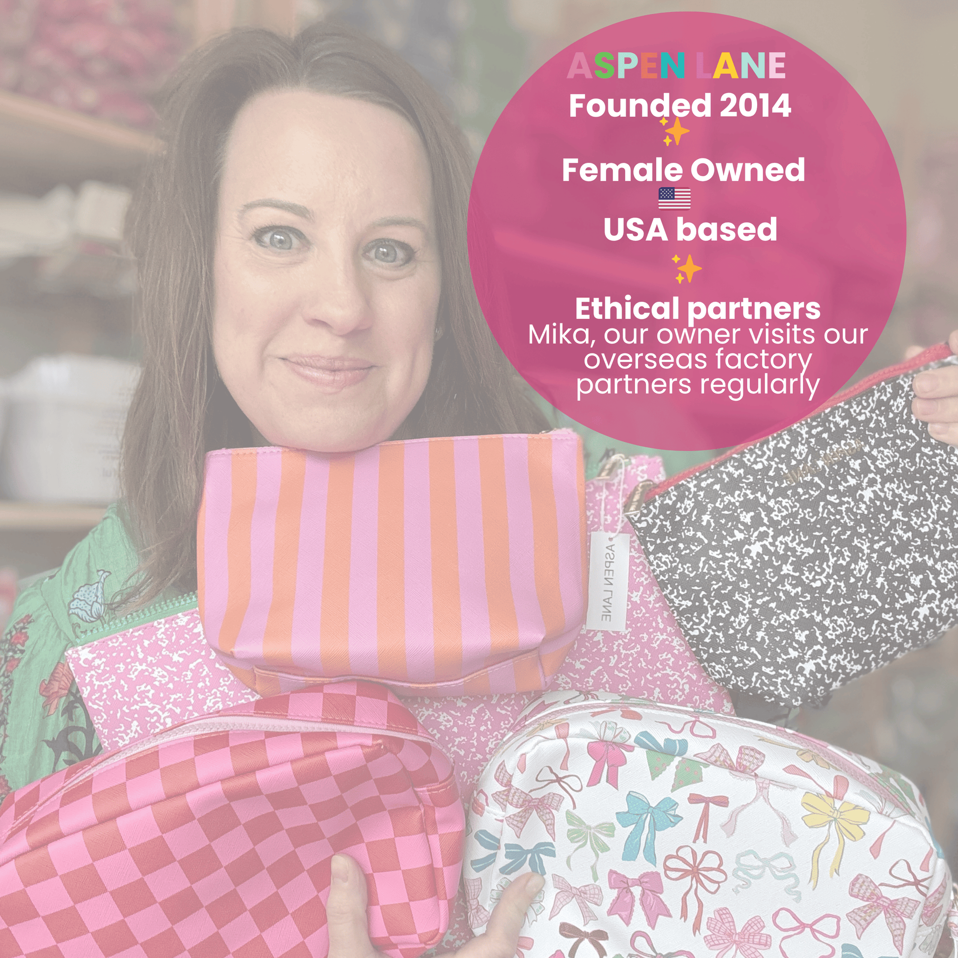 :6x9 cosmetic bag perfect for mahjong, girlfriend gifts, and preppy gift sections coordinates with the trinket tray and flower sack gift towel.