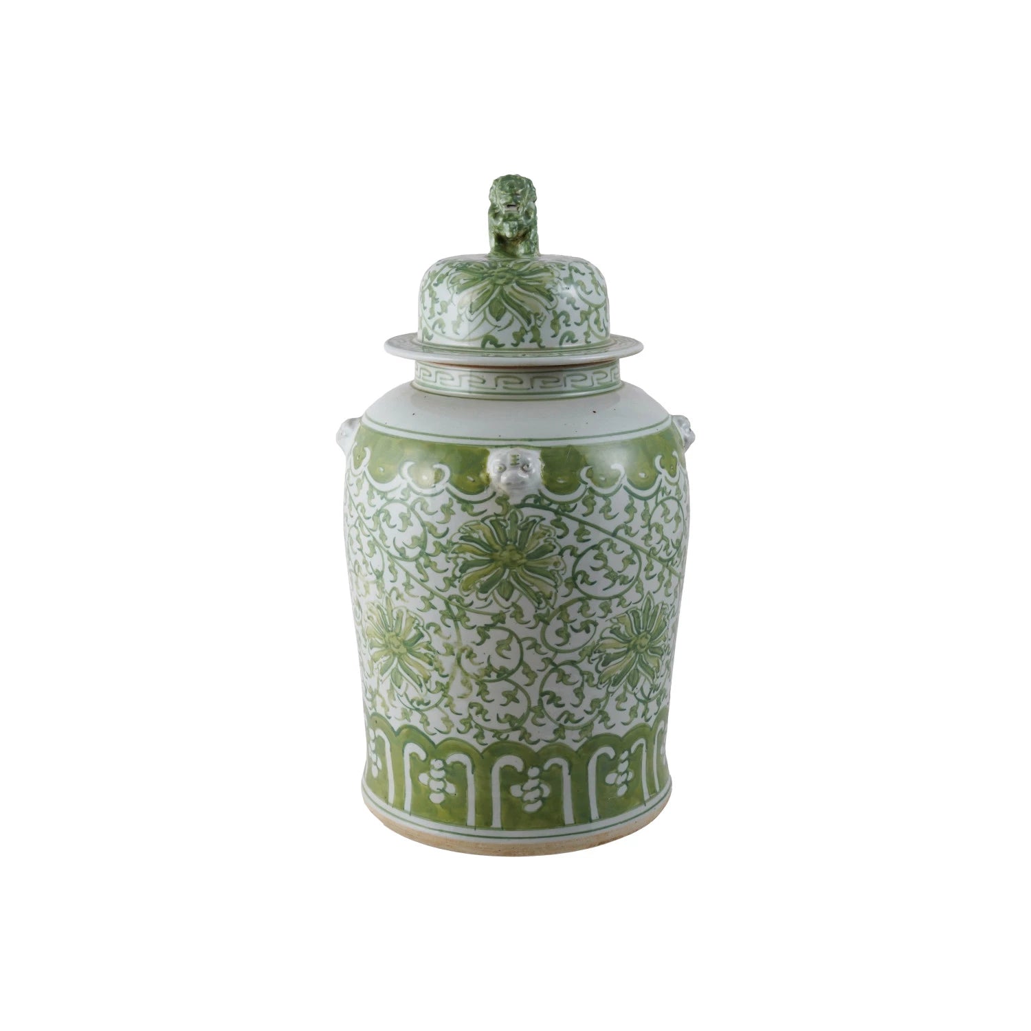 Decorative Hand-Painted Stoneware Ginger Jar w/ Floral Pattern & Foo Dog