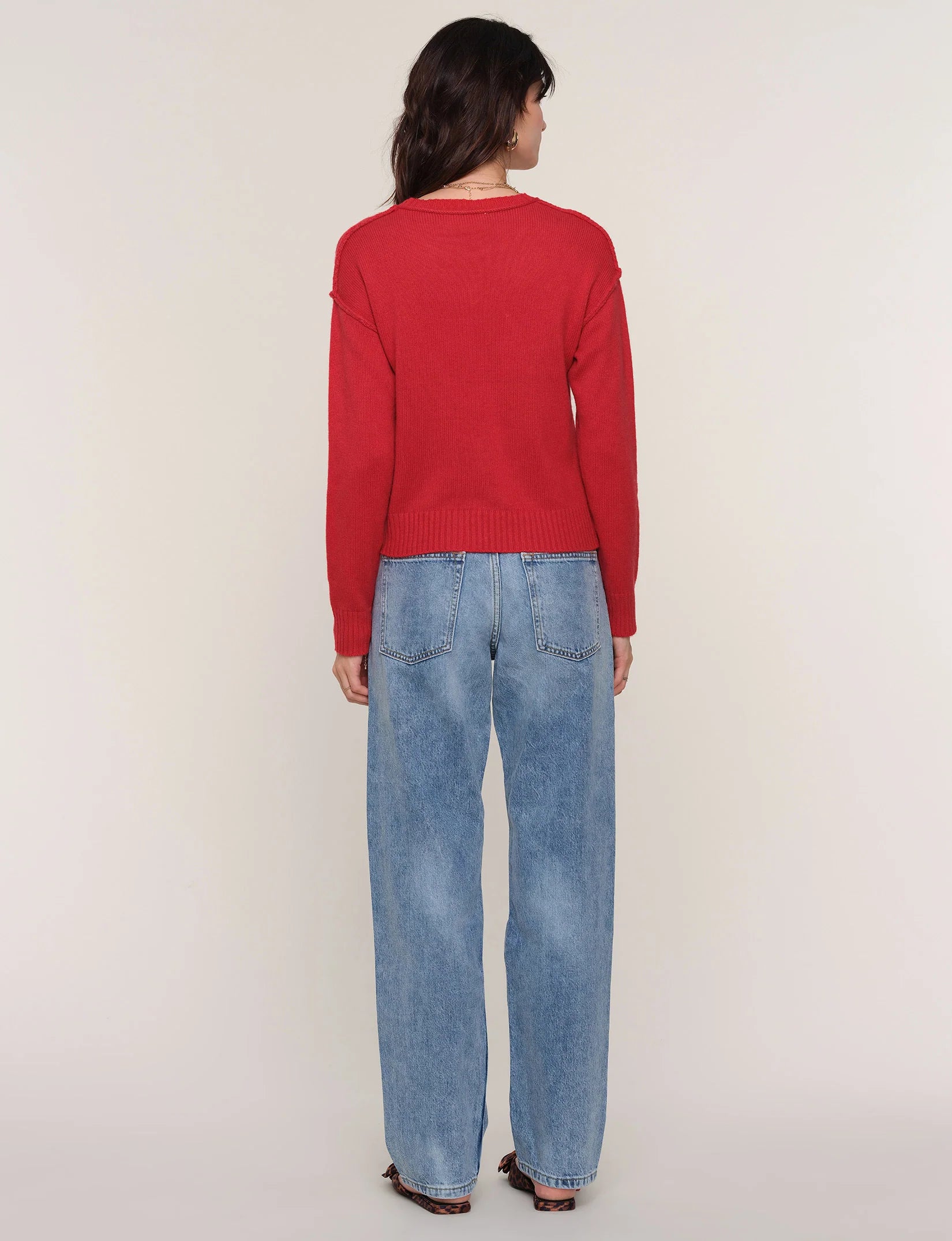 The Celty Sweater is a crew neck, relaxed fit sweater made from a super soft cashmere blend. It has exposed seams and an asymmetric slit at the front hem.