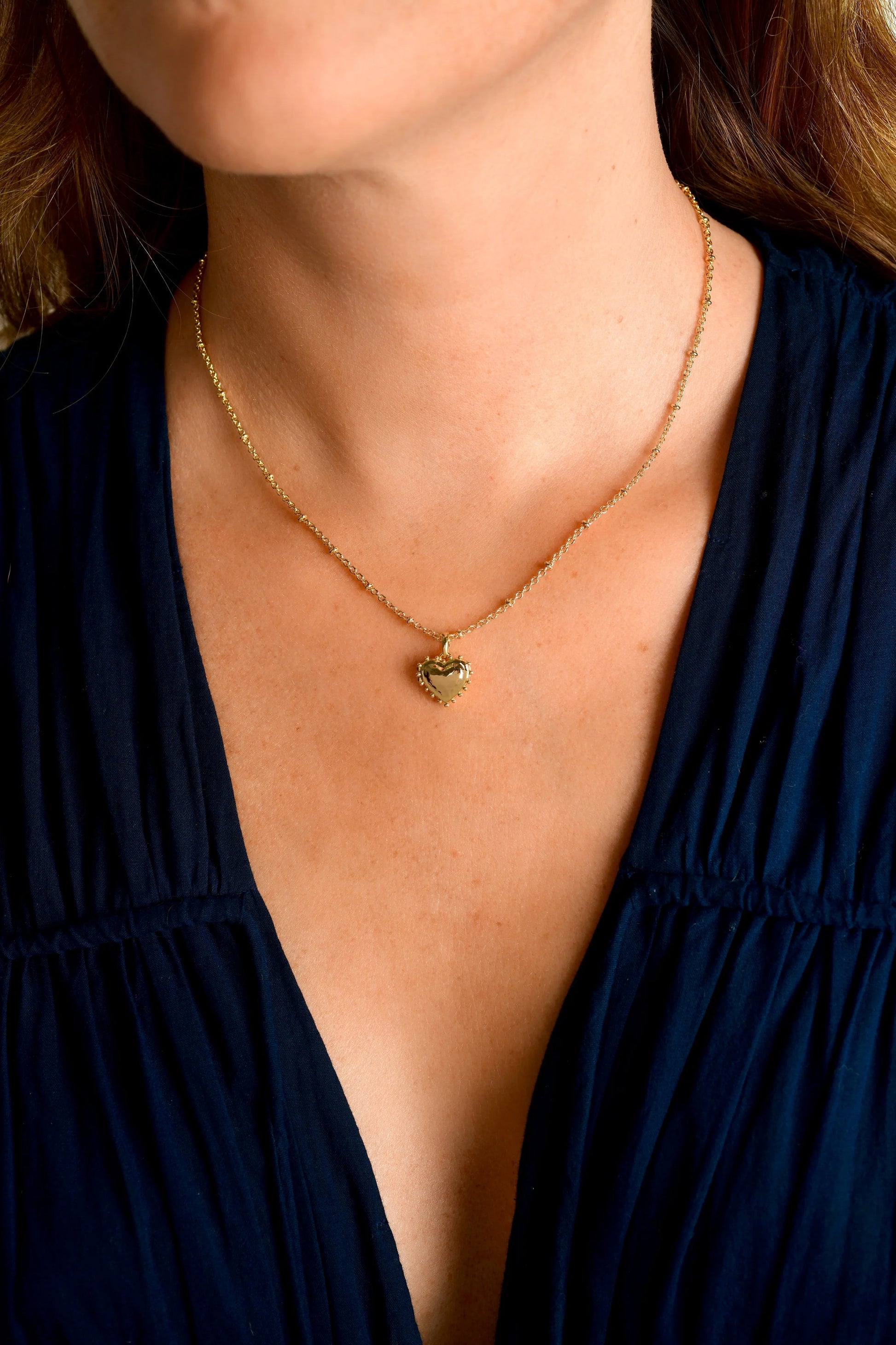 The Heart Small Locket Necklace is hand sculpted and crafted in 18k gold dipped brass, each with a hidden compartment to hold a cherished memory, making them a timeless keepsake. Make a statement with an exquisite heart necklace. Plus, you can easily adjust the length to suit your style. Don't miss out on this luxurious and versatile accessory!