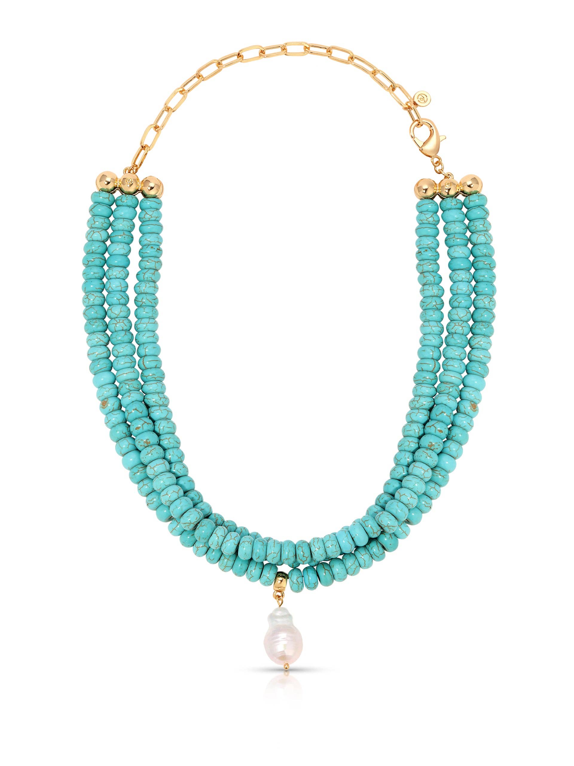 18k Gold Plated, Reconstituted Turquoise, Freshwater Pearl