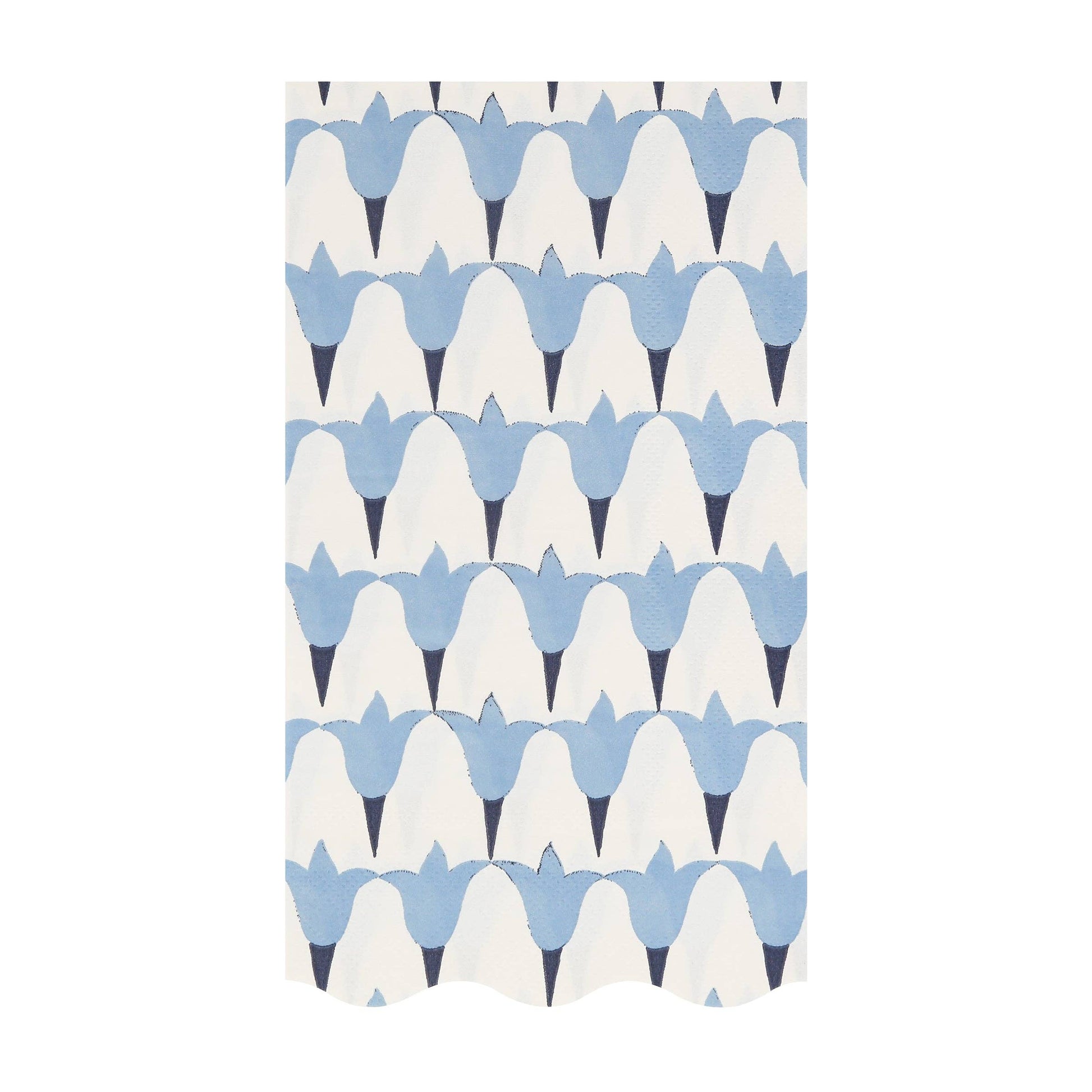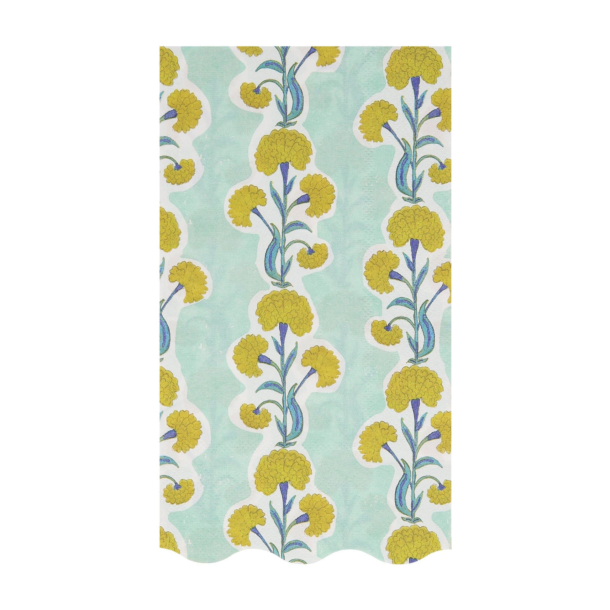 * Made from 3-ply paper, so are practical as well as decorative * This guest napkin set features 4 different floral patterns * Wavy edge * Pack of 16 in 4 designs * Folded dimensions: 4.375 x 7.875 inches
