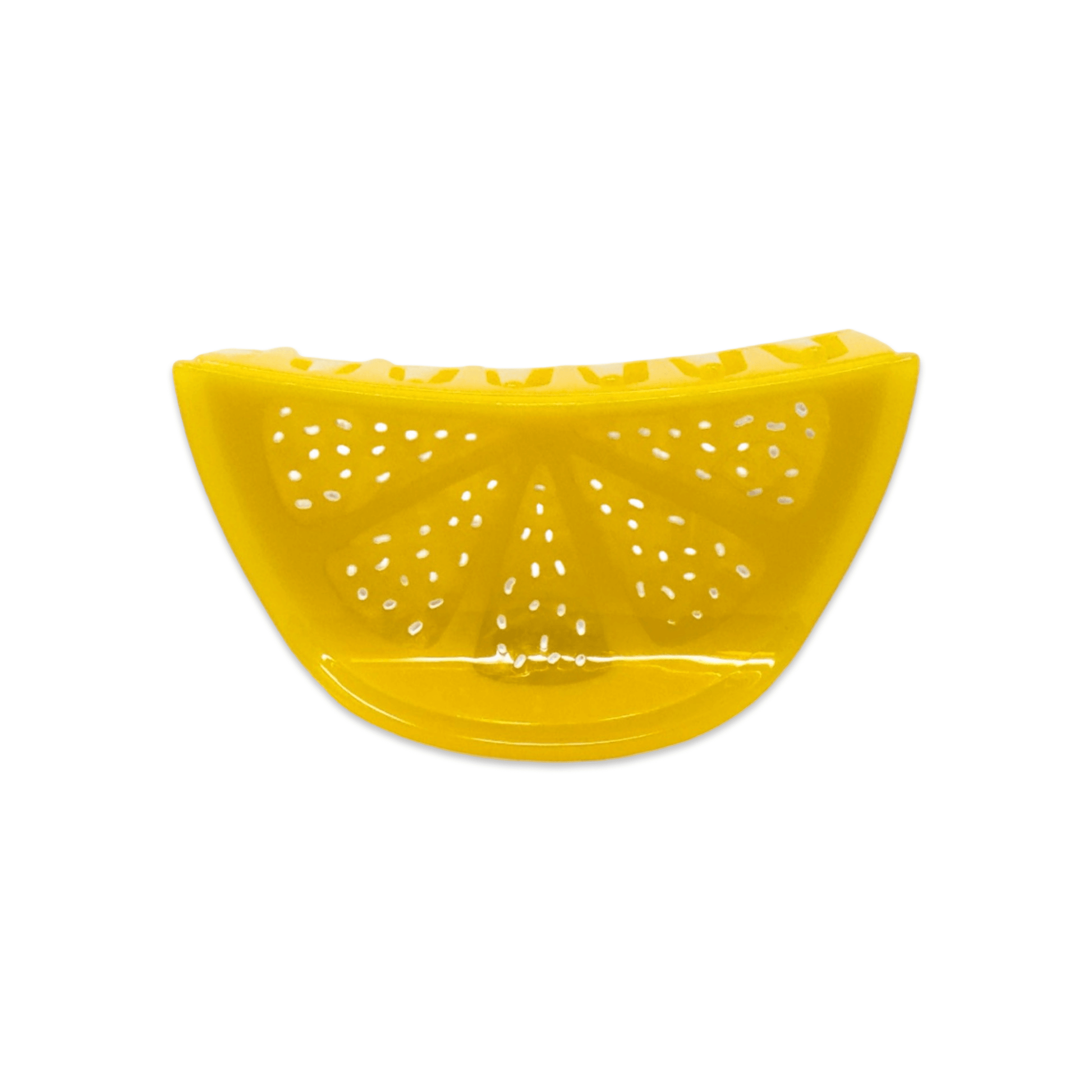 Squeeze some zest into your style with our Midi Lemon Slice Hair Claw Clip! Measuring about 3" x 1.5" x 1.5", this citrusy accessory is handmade and hand-painted from eco-friendly cellulose acetate. Each claw has unique color variations, just like a real lemon slice. Perfect for a playful pop in your hair, it’s a fresh and sustainable way to brighten any look.