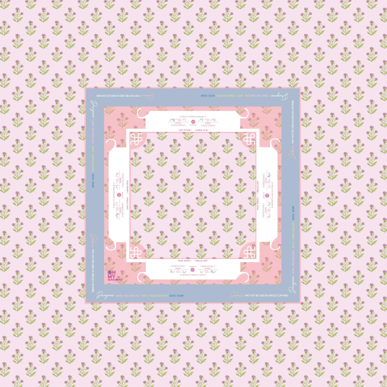 Get ready to elevate your Mahjong sessions with our Mahjong Instructional Tablecloth, showcasing a beautiful Purple Thistle print on a light pink canvas. Created in collaboration with the talented Catherine Cartie.
