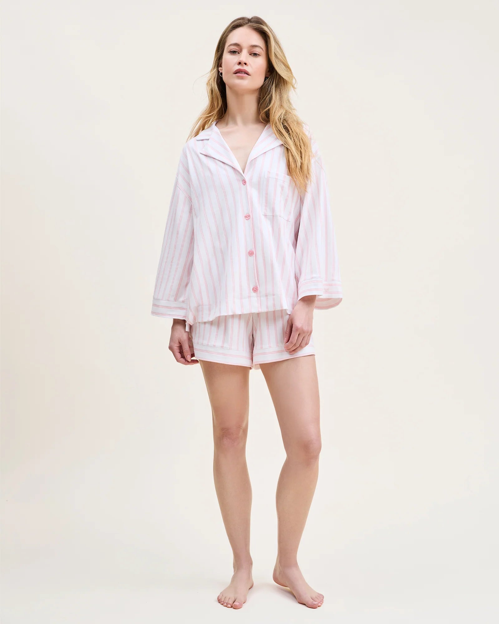 This bestselling Pima cotton pajama set is the apex of comfort and feminine tailoring: a well-considered three-quarter length sleeve, for example, and breezy shorts that feel relaxed yet perfectly polished.