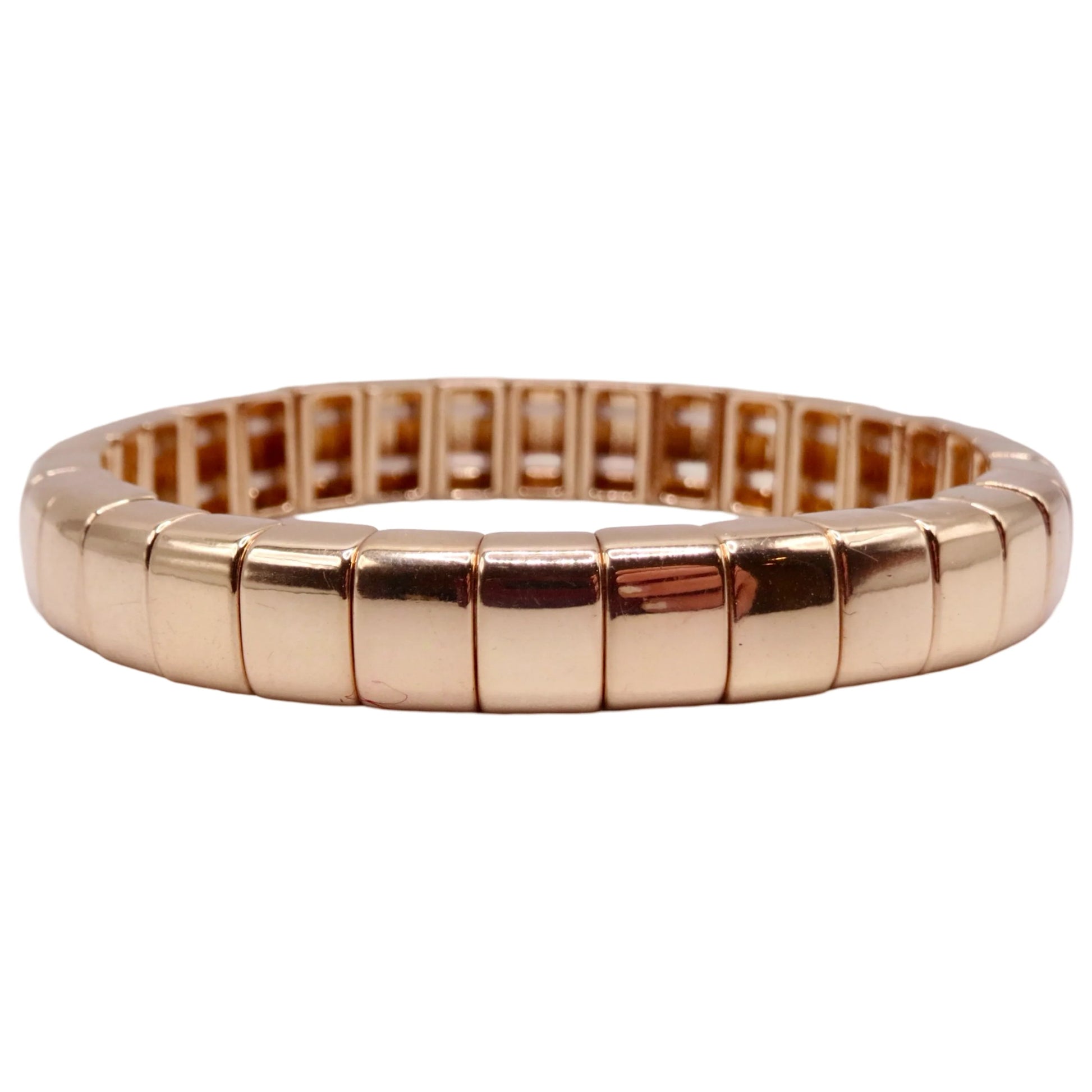 Our Golden Flat Single Bracelet is a staple to any stack, consisting of all gold rounded enamel tile beads. Part of our Fall Collection, this bracelet is 7.25" in length, and is a slip-on-style. All of our single bracelets are designed to be stacked or they can be styled to wear alone.